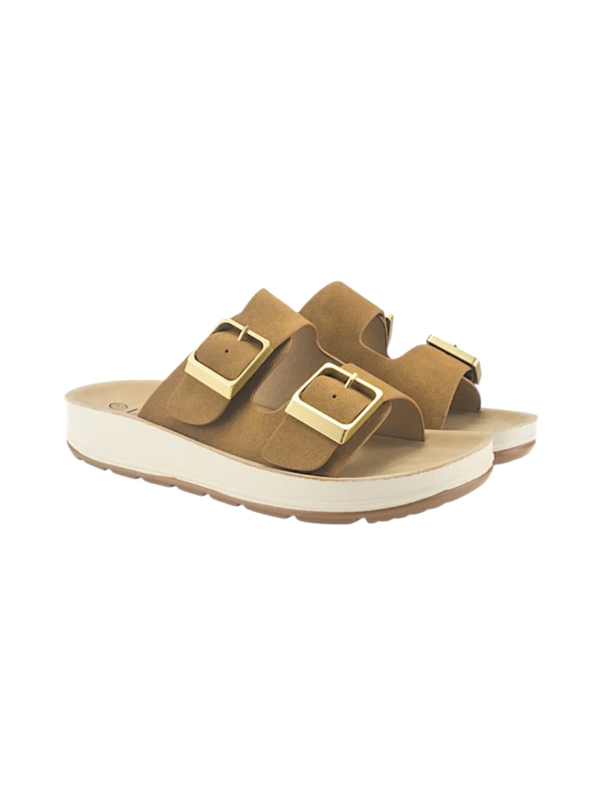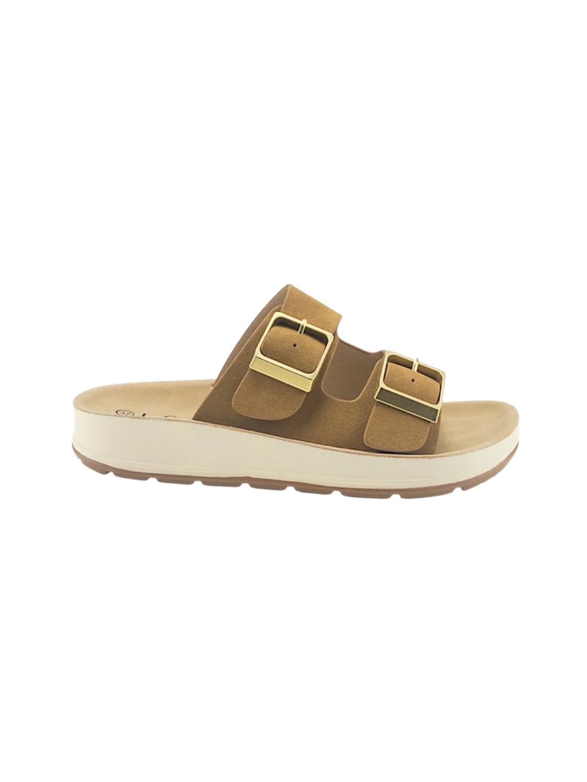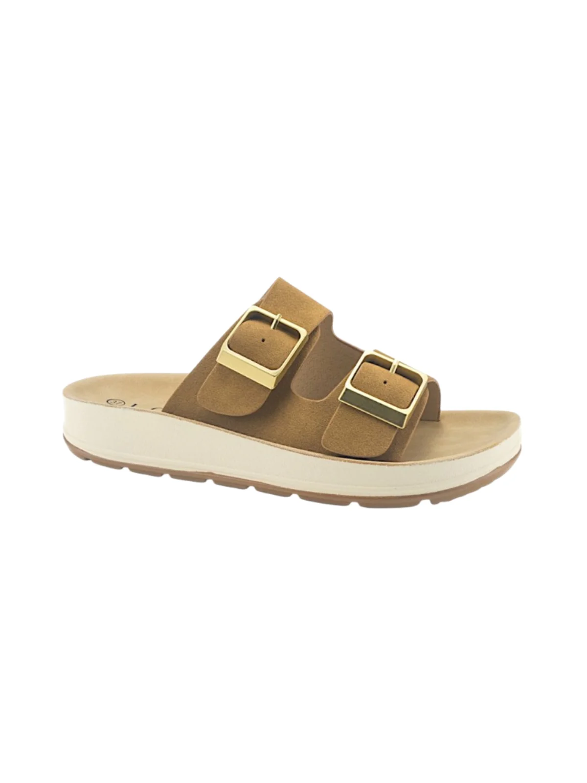 Γυναικείο σανδάλι σε γκρι χρώμα, είναι κατασκευασμένο από συνθετικό δέρμα που το καθιστά πολύ άνετο και πολύ μαλακό. Το ύψος του τακουνιού είναι 3 εκ.