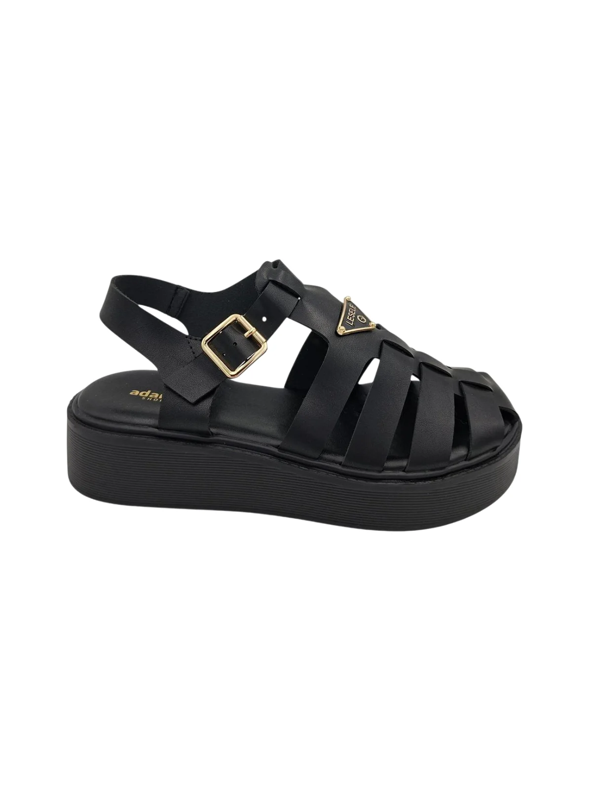 Γυναικεία πέδιλα flatform Adam’s, διαθέσιμα σε μαύρο χρώμα. Κατασκευασμένα από συνθετικό δέρμα, προσφέρουν κανονική εφαρμογή.