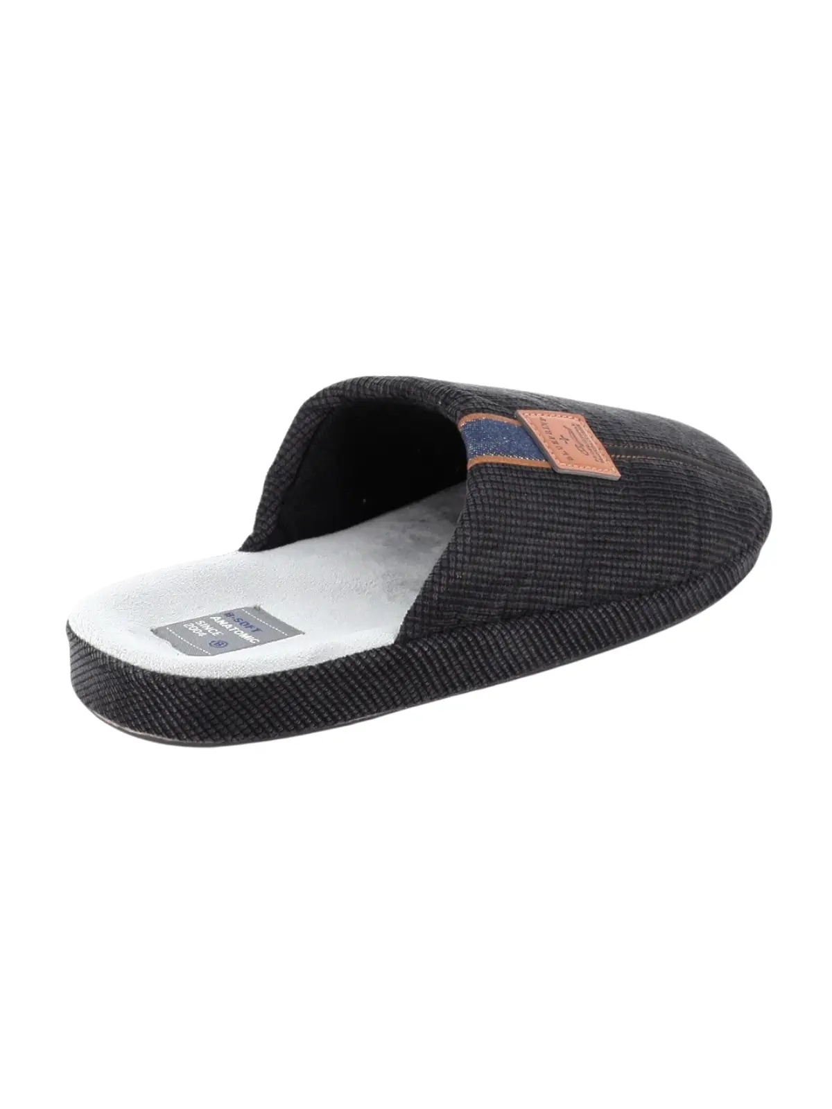 Αντρικές παντόφλες με λεπτομέρεια από κεντημένο σχέδιο στο πάνω μέρος. Με εσωτερική υφασμάτινη επένδυση και ανατομικό πάτο για πολύ αναπαυτικό πάτημα.