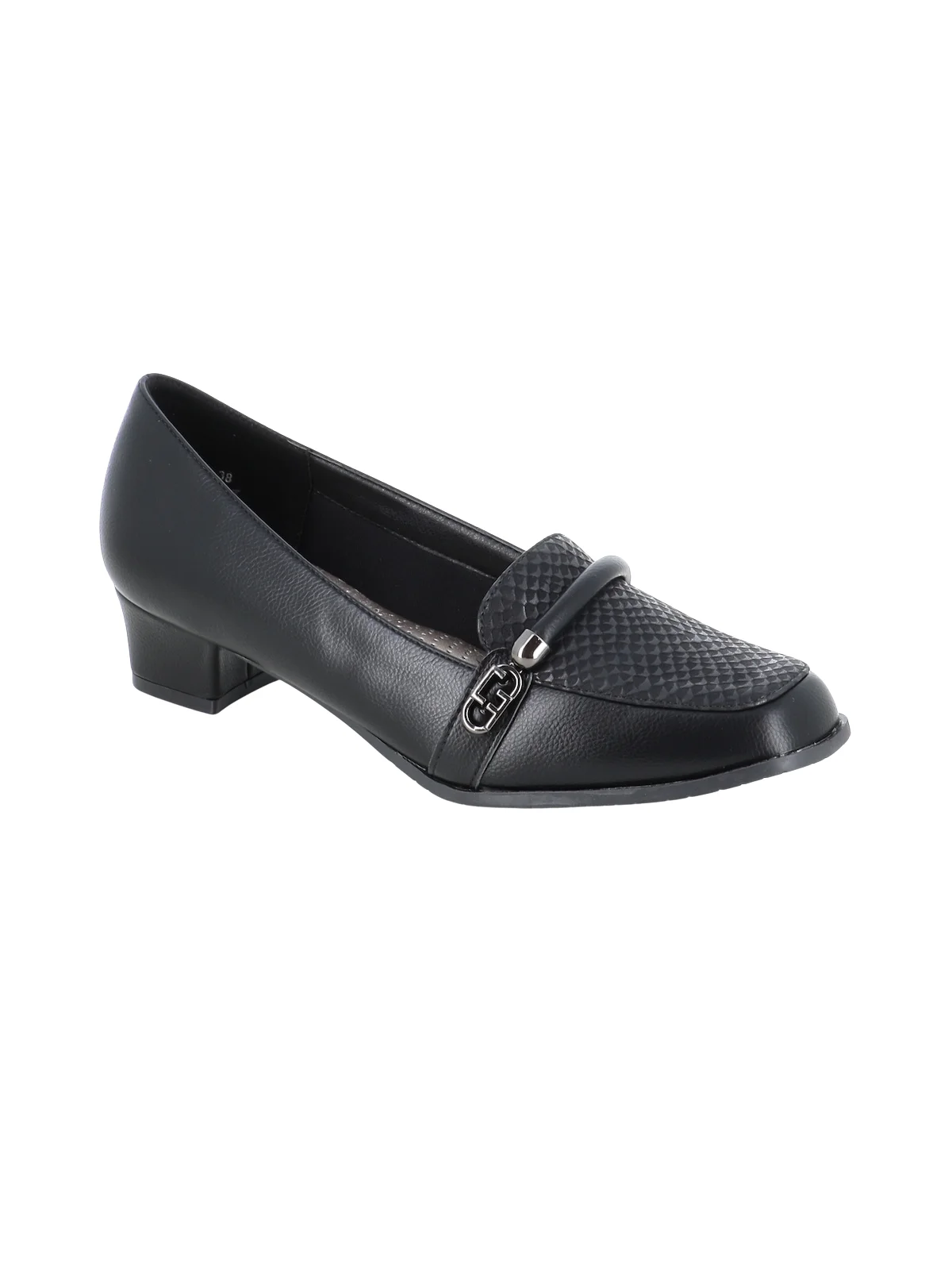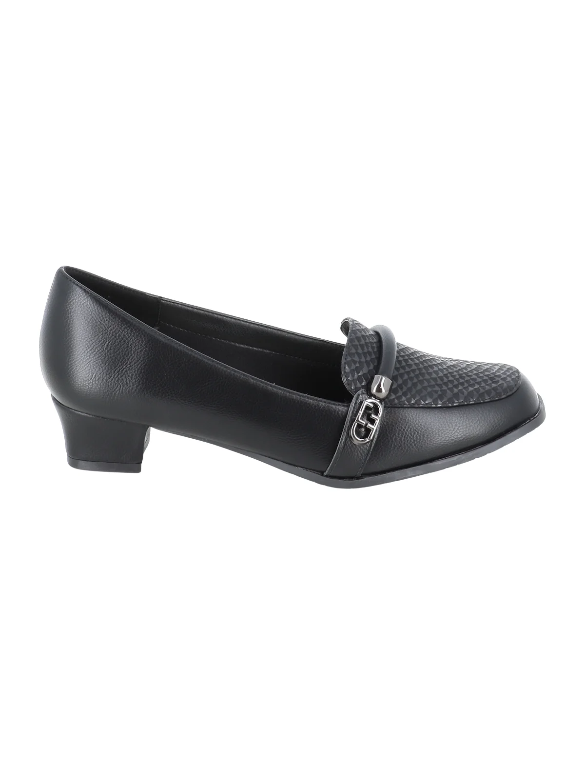 Γυναικείες αναπαυτικές γόβες με χρυσό διακοσμητικό και croco υφή στο μπροστινό μέρος. Με ιδιαίτερα μαλακό εσωτερικό πάτο και αντιολισθητική σόλα.