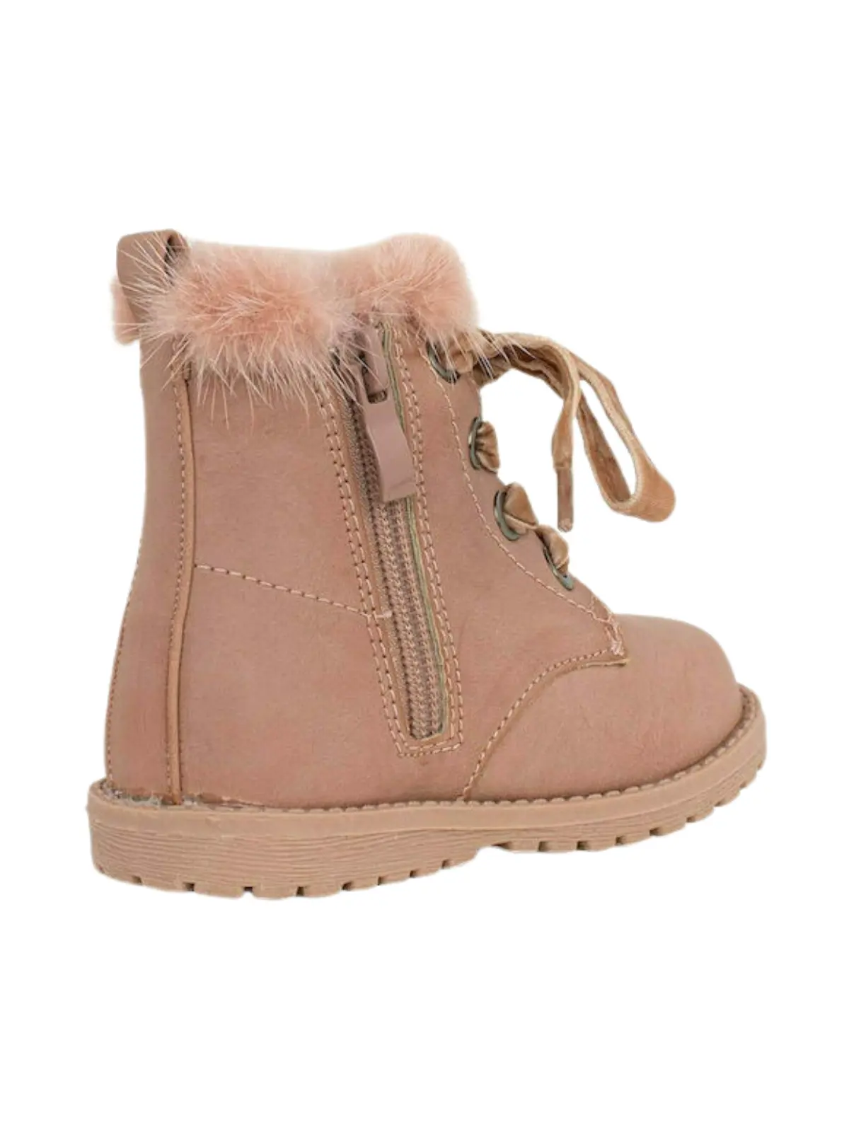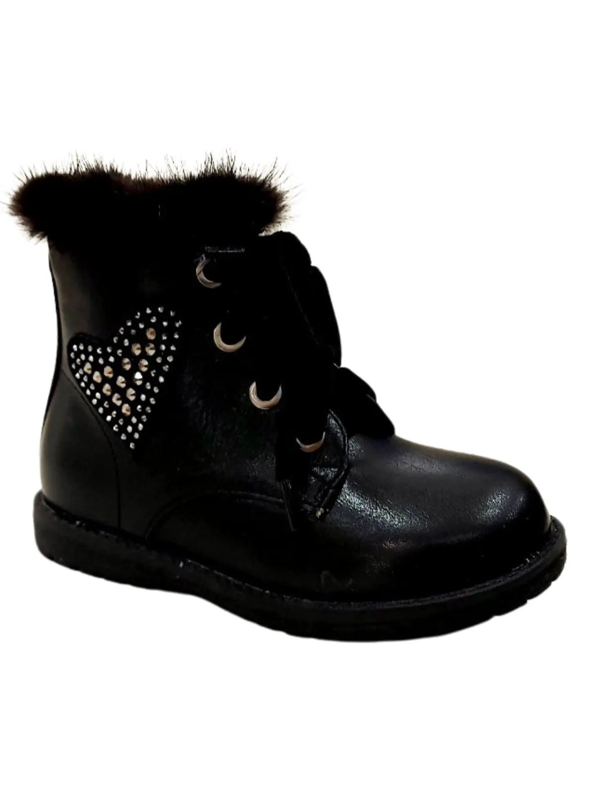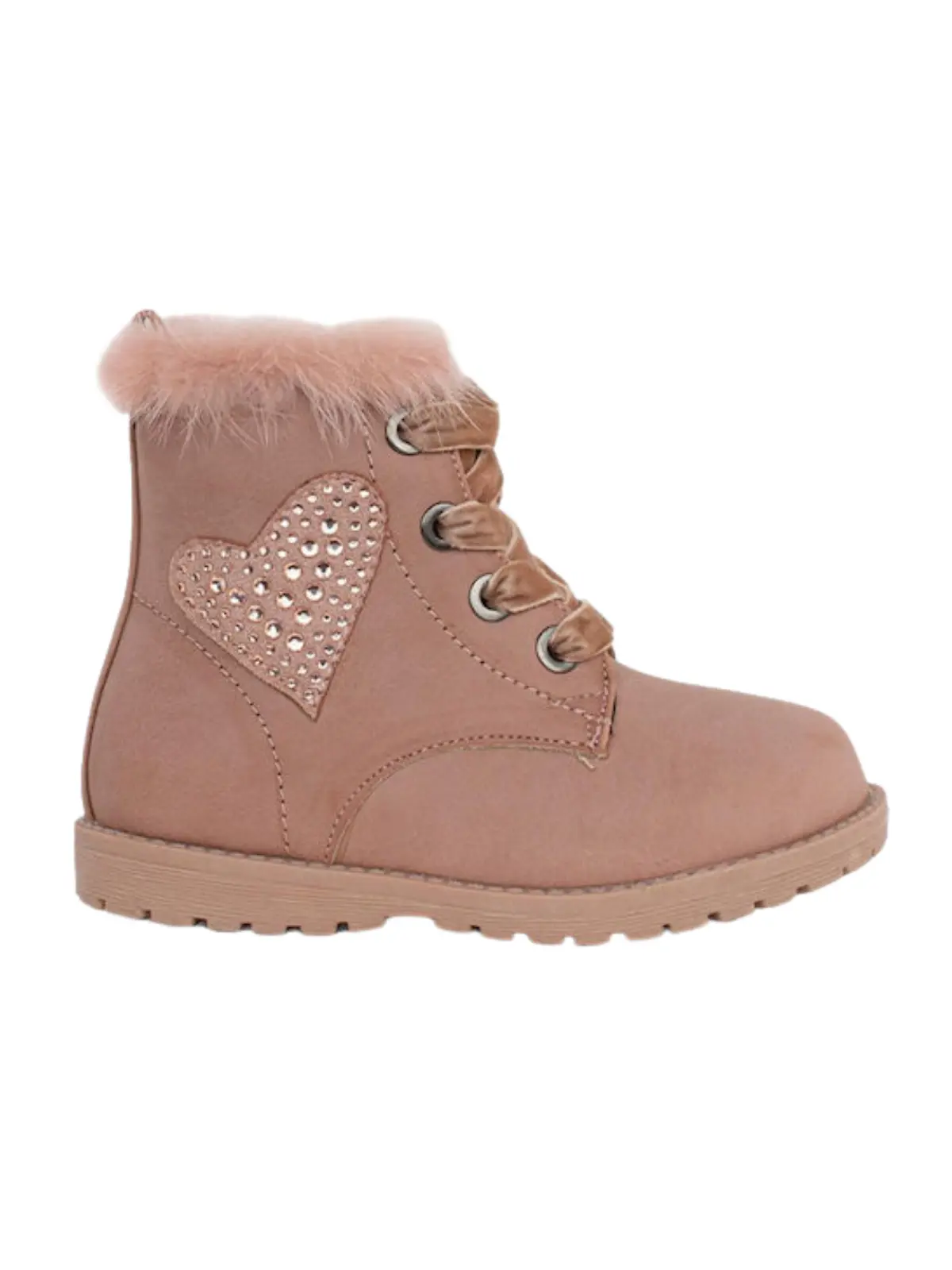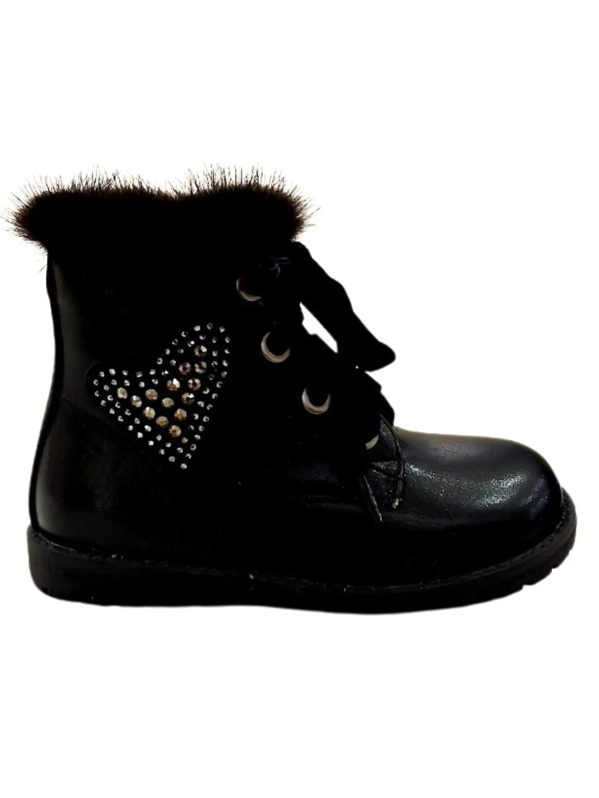 Μοδάτα αρβυλάκι διακοσμημένα με γουνάκι, καρδούλες και στρασάκια. Το εσωτερικό φερμουάρ τα κάνει ευκολοφόρετα. Τα βελούδινα κορδόνια τους χαρίζουν μια αριστοκρατική λάμψη. Ο δερμάτινος πάτος και η αντιολισθητική σόλα προσφέρουν άνετο περπάτημα.