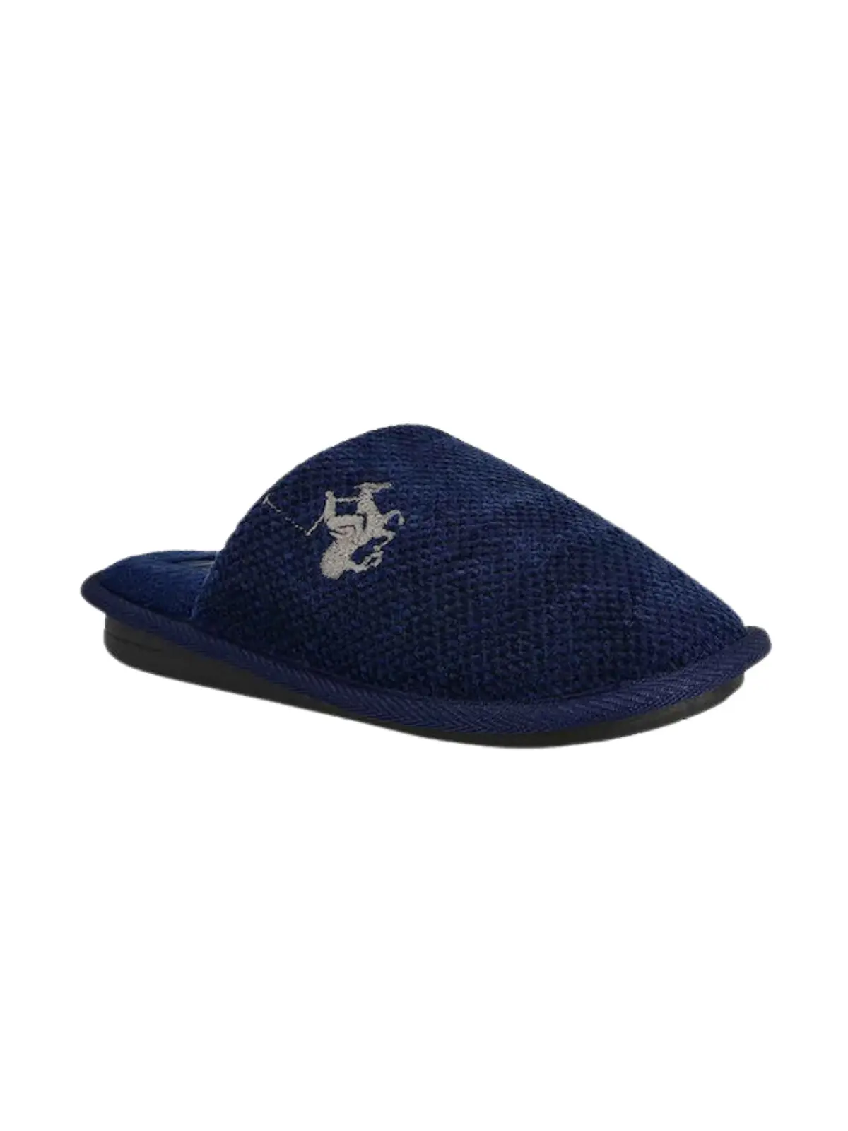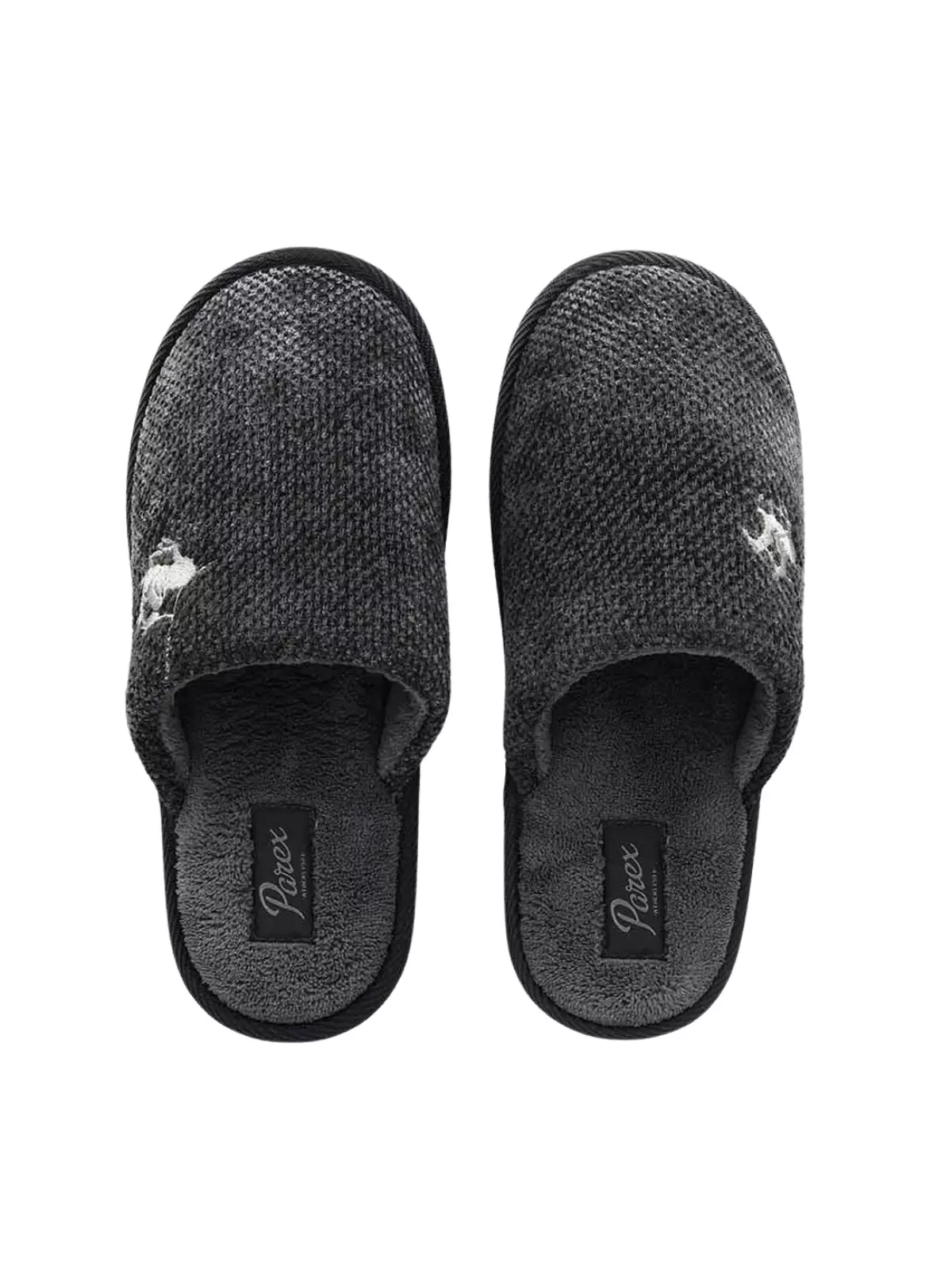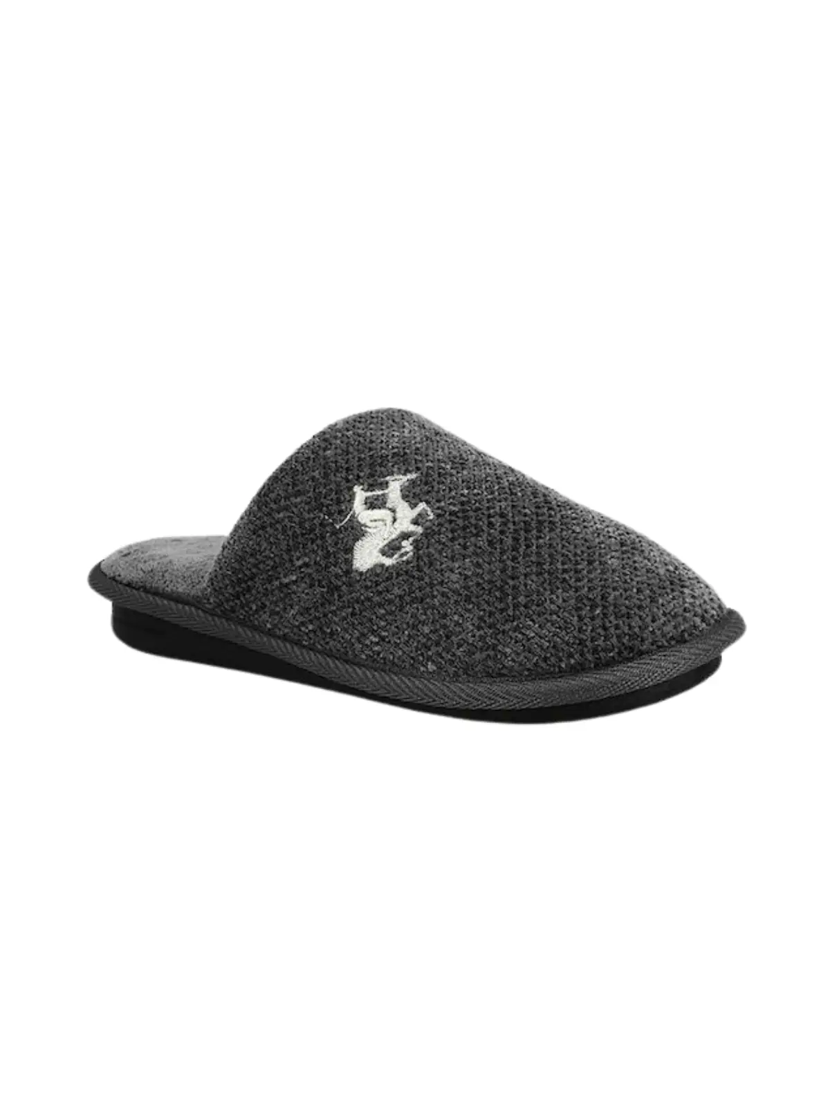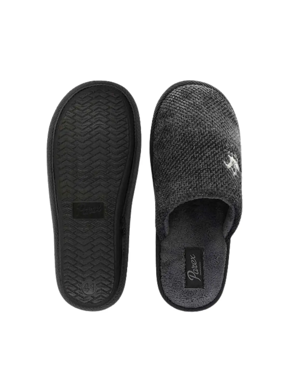 Ανδρικές παντόφλες σπιτιού από μαλακό ύφασμα με διακριτική στάμπα στο πλάι. Έχουν μαλακό και ζεστό πάτο για να ξεκουράζουν τα πόδια σας.