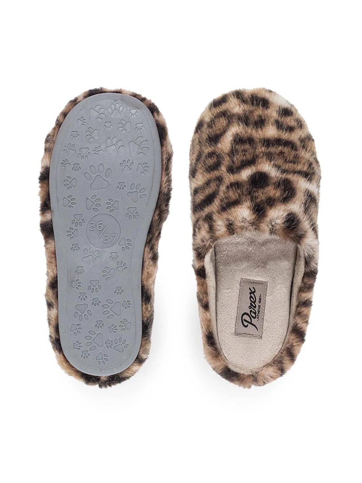 Γυναικείες παντόφλες Parex με λεοπάρ σχέδιο και εξαιρετικά απαλή υφή. Άνετες και ζεστές για τον χειμώνα, με αντιολισθητική σόλα για σταθερό περπάτημα. Ιδανικές για καθημερινή χρήση στο σπίτι.