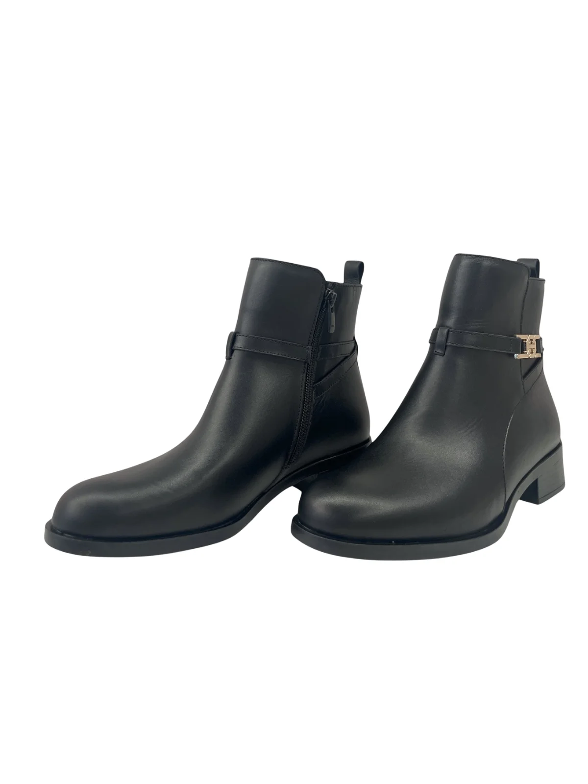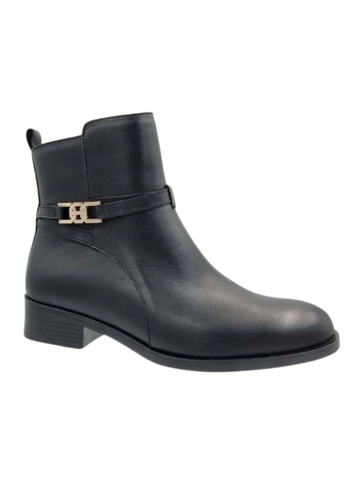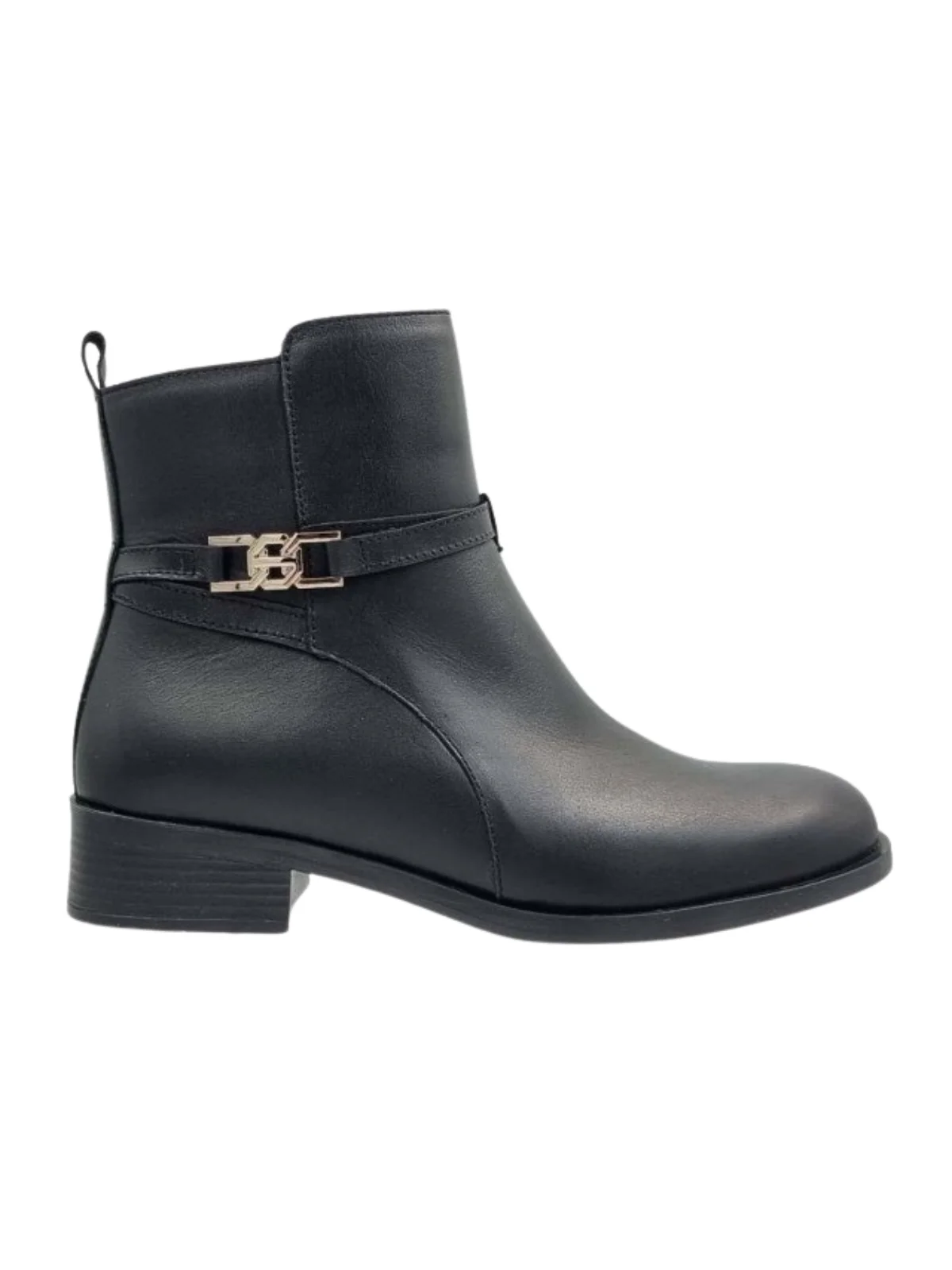 Γυναικεία Μποτάκια Ragazza, κατασκευασμένα από δέρμα, διαθέτουν λείο φινίρισμα και διακοσμητικό λουράκι με χρυσή μεταλλική αγκράφα που προσθέτει φινέτσα και ξεχωριστό στυλ.